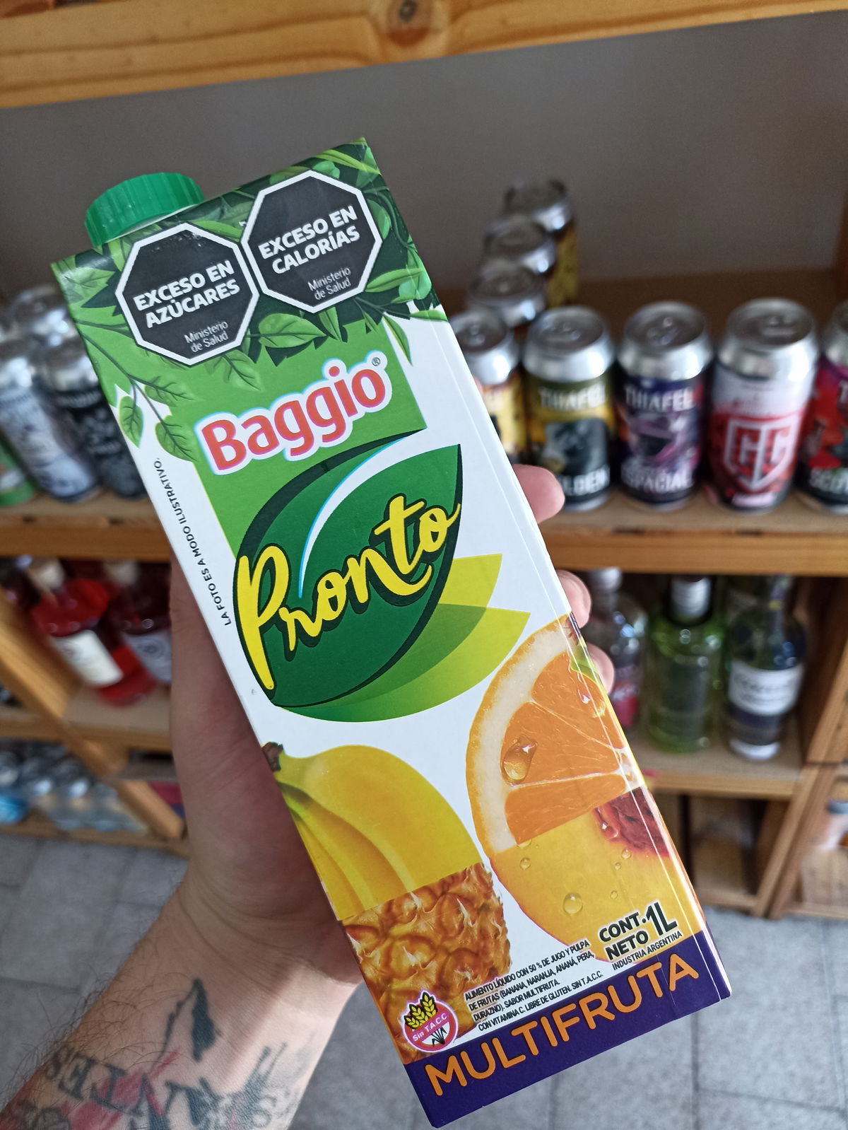 El jugo Baggio Multifruta es una bebida con alrededor del 50% de jugo y pulpa de frutas como banana, naranja, ananá, pera y durazno. Está enriquecido con vitamina C, es libre de gluten (Sin TACC), y es una bebida de origen vegetal sin conservantes.