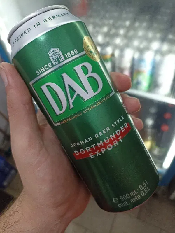 La DAB Dortmunder Export es una cerveza alemana de estilo lager, con un 5% de alcohol, que destaca por su color dorado brillante y su equilibrio entre malta y lúpulo. Su aroma es floral y herbal, con notas de malta y miel, mientras que en boca presenta una textura suave con burbujas finas y un sabor fresco con un final ligeramente amargo y refrescante. Es una cerveza equilibrada, fácil de beber, ideal para acompañar comidas ligeras como ensaladas o pescados, o disfrutarla sola.