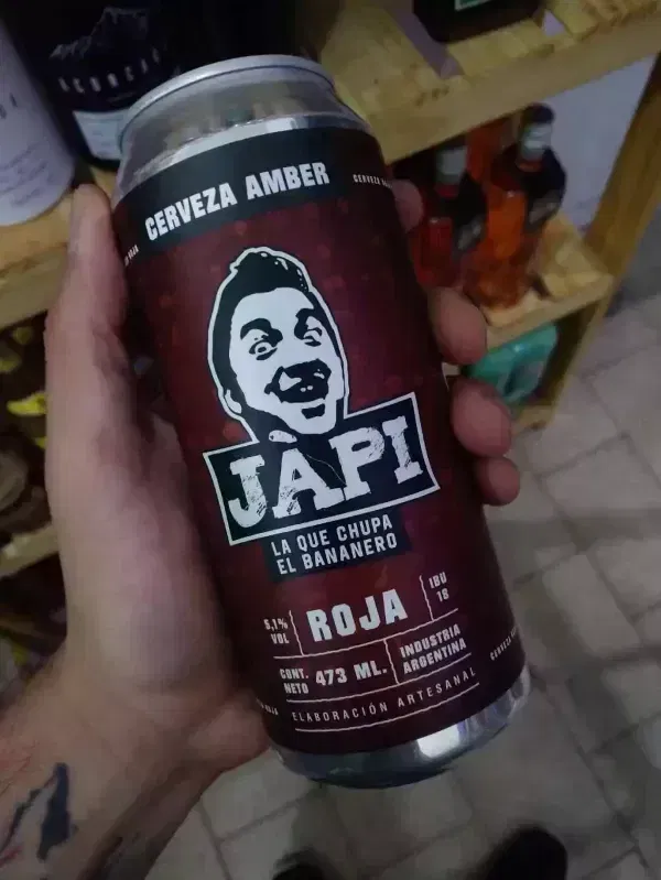 Japi Amber es una cerveza artesanal de estilo Amber Lager, del famoso influencer uruguayo El Bananero, que se caracteriza por su color rojo intenso y su sabor robusto con notas maltosas y un ligero toque dulce a caramelo. Con una graduación alcohólica del 5.1%, esta cerveza equilibrada es ideal para disfrutar sola o para acompañar comidas