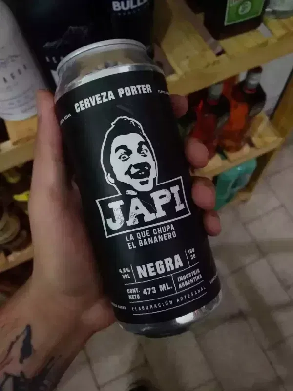 La Cerveza Japi Porter Negra es una cerveza artesanal estilo porter, de color negro intenso y 4.8% de graduación alcohólica, del famoso influencer uruguayo El Bananero, se caracteriza por un sabor robusto y cremoso con notas a café, chocolate negro, tofi y maltas tostadas. Con un amargor de 30 IBUs, ofrece un final seco y equilibrado